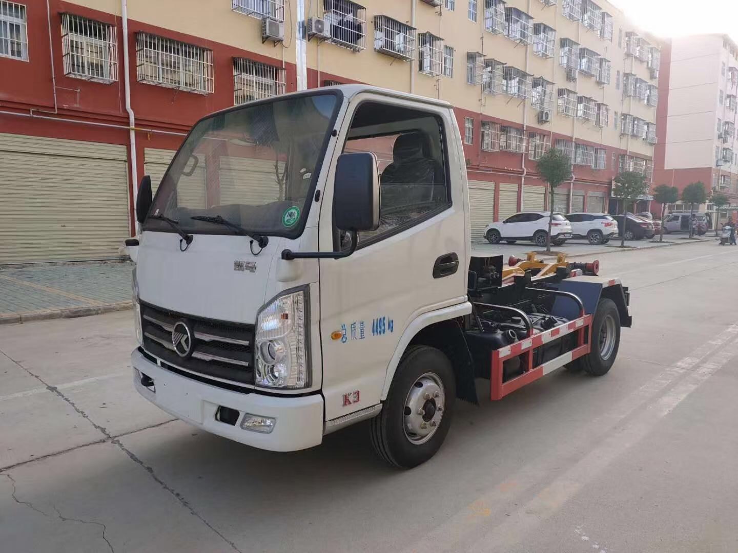 國六4方凱馬勾臂垃圾車 整車型號:CLW5047ZXXK6 底盤型號:KMC1040B260DP6 底盤配置:2600軸距柴油,新款五十鈴1580白色單排可翻轉