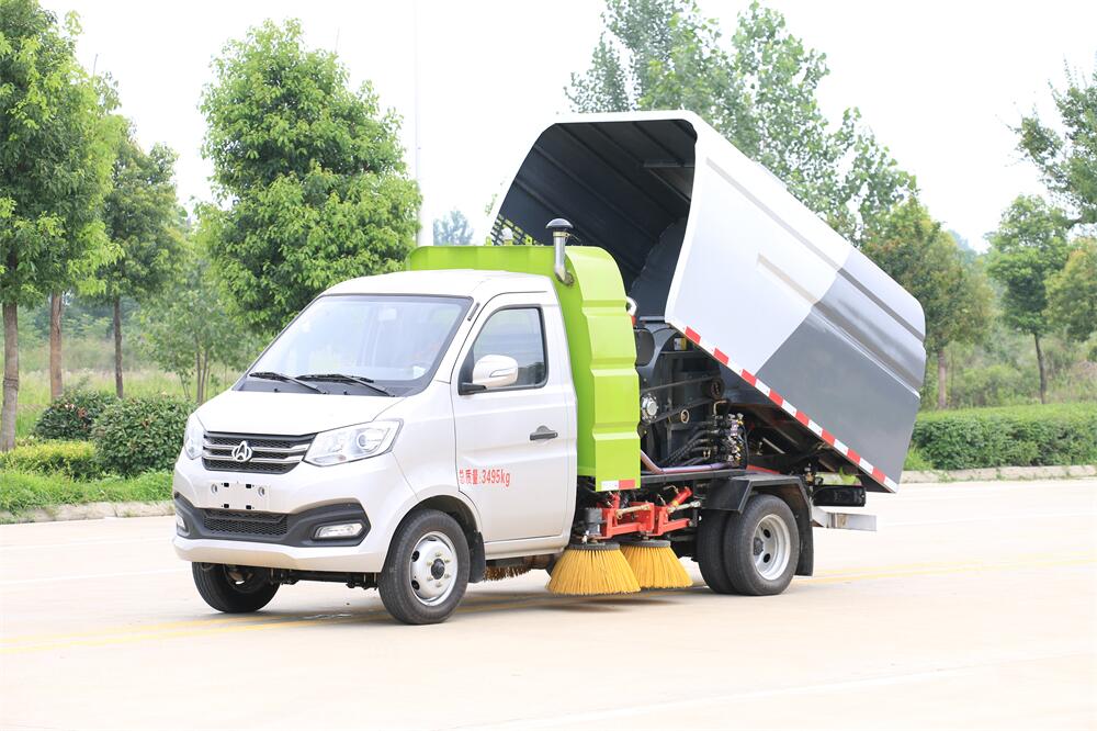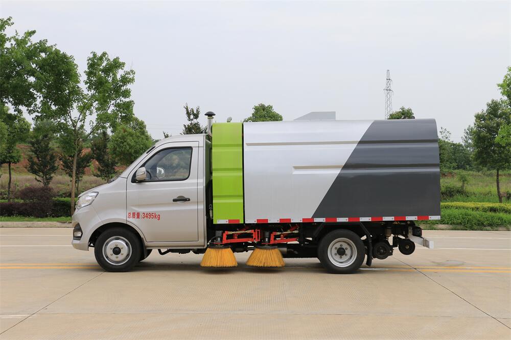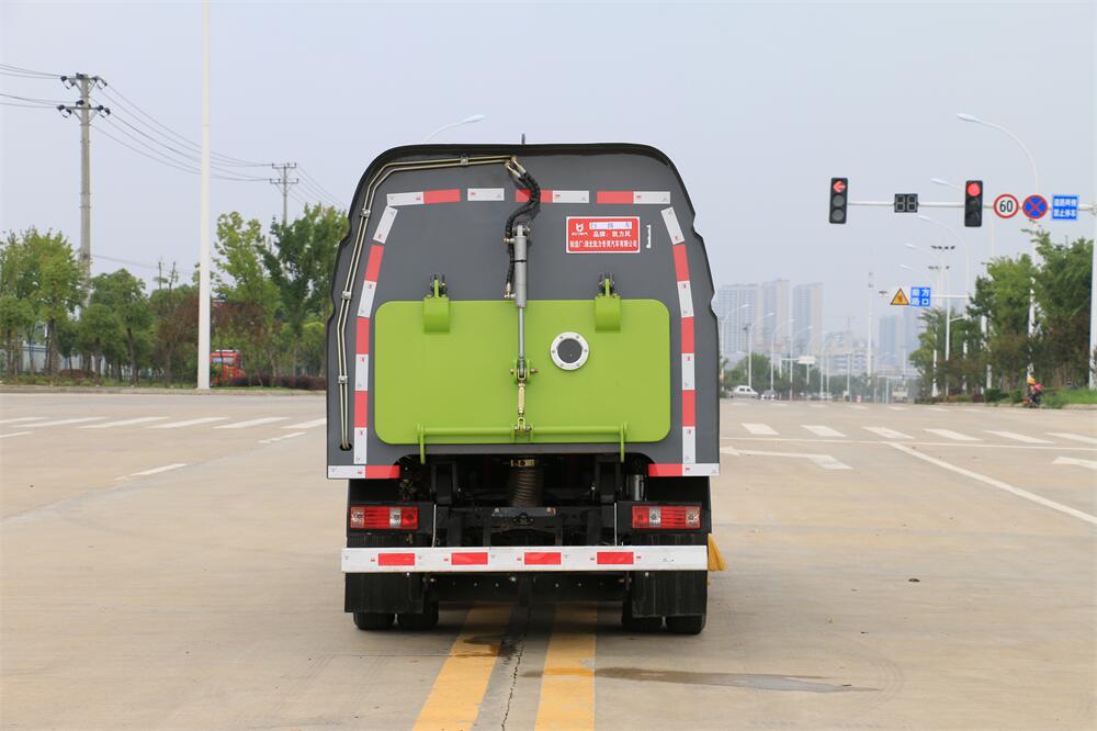 1.采用吸掃混合的方式收集垃圾,濕式除塵、電液,液壓傾翻卸料的作業(yè)方式對路面進(jìn)行清掃作業(yè)。