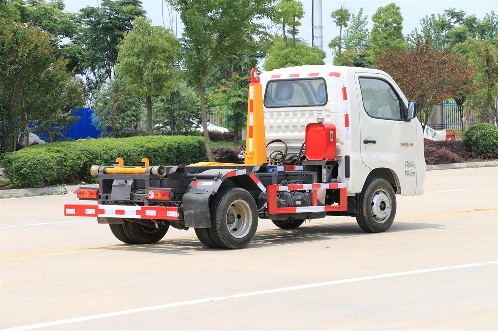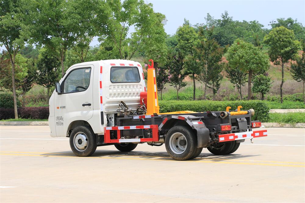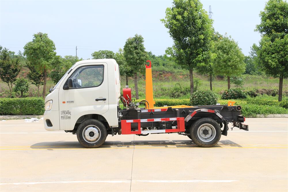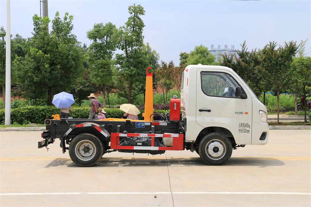 勾臂式垃圾車(車廂可卸式垃圾車)介紹: 車廂可卸式垃圾車又叫拉臂式垃圾車,是一種采用高新設(shè)計可伸縮的鉤臂,實現(xiàn)垃圾廂的二次吊裝,自吊上放下,可自行傾倒垃圾的環(huán)衛(wèi)設(shè)備。 拉臂式垃圾車結(jié)構(gòu)簡單,操作穩(wěn)定方便,裝卸效率高,機械化程度高,節(jié)省人力。鉤臂垃圾車一車可帶多個垃圾廂,在裝卸的運輸過程中可有效地避免二次污染。 拉臂垃圾車采用高新設(shè)計可擺動的鉤臂,垃圾箱由框架、開啟油缸、滑輪、后門和若干加強框架與鋼板焊接而成。調(diào)換貨廂快捷方便,貨廂上帶蓋(倒垃圾時可翻開),鉤臂垃圾車垃圾廂體可選用碳鋼、不銹鋼材質(zhì)、內(nèi)部采取環(huán)氧樹脂防腐處理,改裝部分與原車底盤為可分離式,維修方便且保持了原車的機動性及行駛性能。