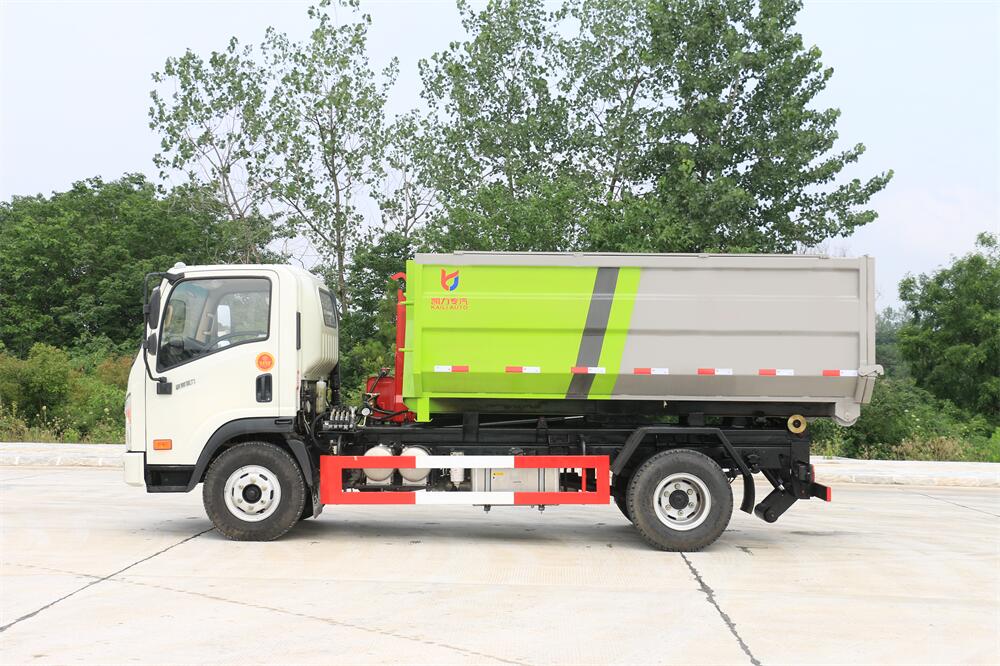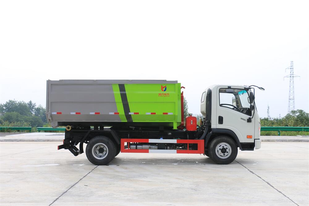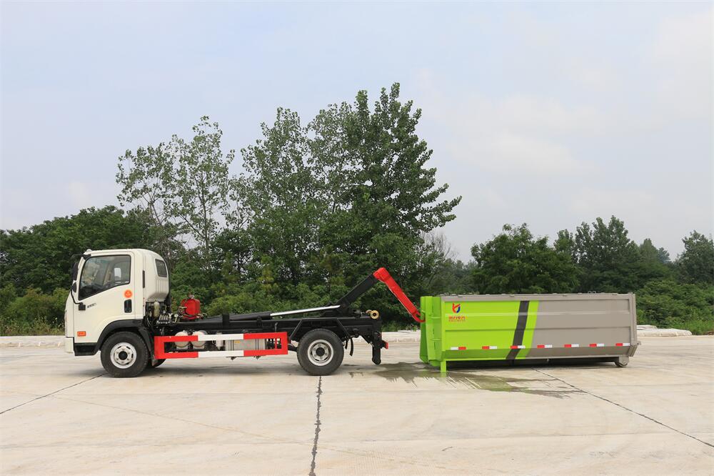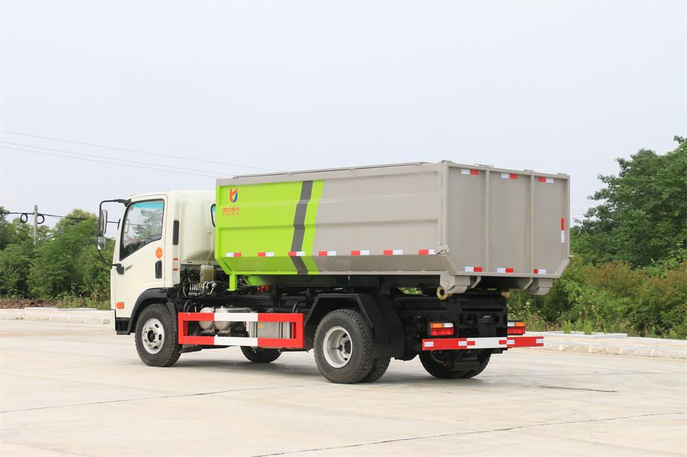 勾臂式垃圾車(車廂可卸式垃圾車)介紹: 車廂可卸式垃圾車又叫拉臂式垃圾車,是一種采用高新設計可伸縮的鉤臂,實現垃圾廂的二次吊裝,自吊上放下,可自行傾倒垃圾的環衛設備。 拉臂式垃圾車結構簡單,操作穩定方便,裝卸效率高,機械化程度高,節省人力。鉤臂垃圾車一車可帶多個垃圾廂,在裝卸的運輸過程中可有效地避免二次污染。 拉臂垃圾車采用高新設計可擺動的鉤臂,垃圾箱由框架、開啟油缸、滑輪、后門和若干加強框架與鋼板焊接而成。調換貨廂快捷方便,貨廂上帶蓋(倒垃圾時可翻開),鉤臂垃圾車垃圾廂體可選用碳鋼、不銹鋼材質、內部采取環氧樹脂防腐處理,改裝部分與原車底盤為可分離式,維修方便且保持了原車的機動性及行駛性能。