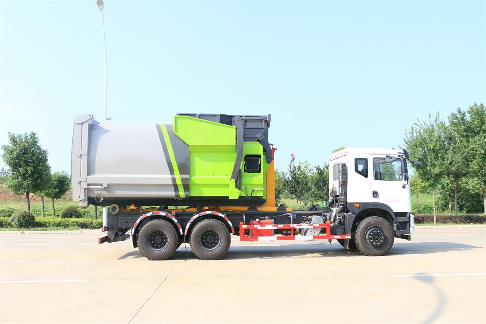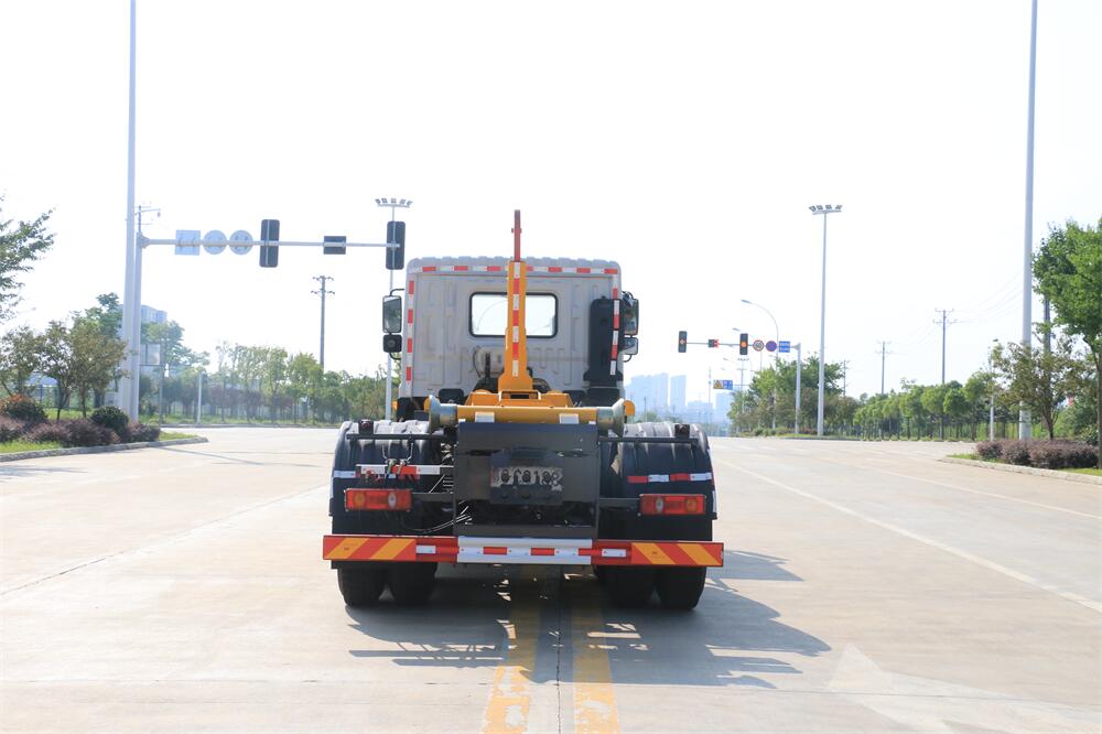 勾臂式垃圾車(車廂可卸式垃圾車)介紹: 車廂可卸式垃圾車又叫拉臂式垃圾車,是一種采用高新設(shè)計(jì)可伸縮的鉤臂,實(shí)現(xiàn)垃圾廂的二次吊裝,自吊上放下,可自行傾倒垃圾的環(huán)衛(wèi)設(shè)備。 拉臂式垃圾車結(jié)構(gòu)簡(jiǎn)單,操作穩(wěn)定方便,裝卸效率高,機(jī)械化程度高,節(jié)省人力。鉤臂垃圾車一車可帶多個(gè)垃圾廂,在裝卸的運(yùn)輸過(guò)程中可有效地避免二次污染。 拉臂垃圾車采用高新設(shè)計(jì)可擺動(dòng)的鉤臂,垃圾箱由框架、開(kāi)啟油缸、滑輪、后門和若干加強(qiáng)框架與鋼板焊接而成。調(diào)換貨廂快捷方便,貨廂上帶蓋(倒垃圾時(shí)可翻開(kāi)),鉤臂垃圾車?yán)鴰w可選用碳鋼、不銹鋼材質(zhì)、內(nèi)部采取環(huán)氧樹(shù)脂防腐處理,改裝部分與原車底盤為可分離式,維修方便且保持了原車的機(jī)動(dòng)性及行駛性能。
