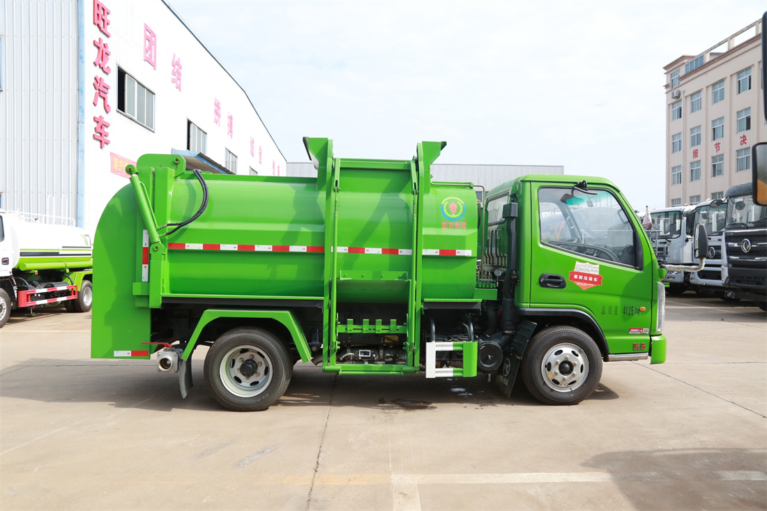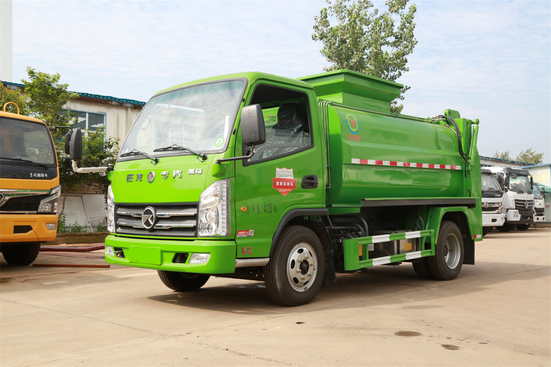上裝配置:罐體容積4m3,配備120L/240L掛桶提升翻轉機構,液壓系統,后蓋液壓鎖緊開啟,罐體可以舉升自卸,尾部帶自流閥;用于運輸液態垃圾,其特點操作簡單,密封性好,無泄漏,無異味;可選裝固液分離功能,推板擠壓功能,常用于餐館的垃圾轉運處理。