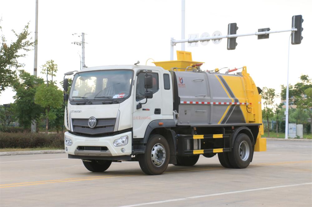 上裝配置:罐體容積10m3,配備120L/240L掛桶提升翻轉機構,液壓系統,后蓋液壓鎖緊開啟,罐體可以舉升自卸,尾部帶自流閥;用于運輸液態垃圾,其特點操作簡單,密封性好,無泄漏,無異味;可選裝固液分離功能,推板擠壓功能,常用于餐館的垃圾轉運處理。