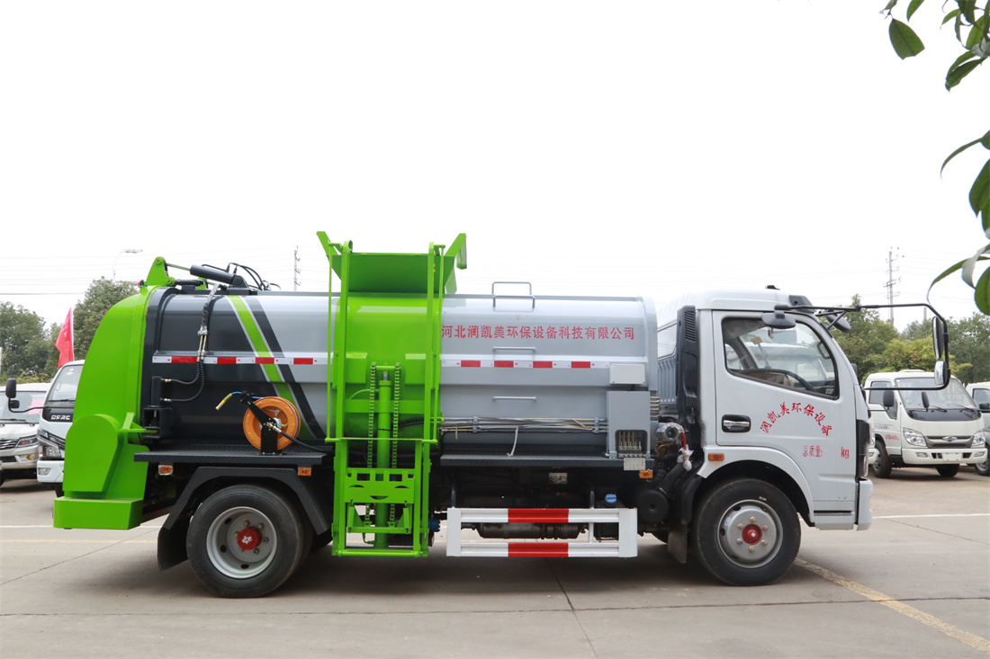 上裝配置:罐體容積8m3,配備120L/240L掛桶提升翻轉(zhuǎn)機構(gòu),液壓系統(tǒng),后蓋液壓鎖緊開啟,罐體可以舉升自卸,尾部帶自流閥;用于運輸液態(tài)垃圾,其特點操作簡單,密封性好,無泄漏,無異味;可選裝固液分離功能,推板擠壓功能,常用于餐館的垃圾轉(zhuǎn)運處理。