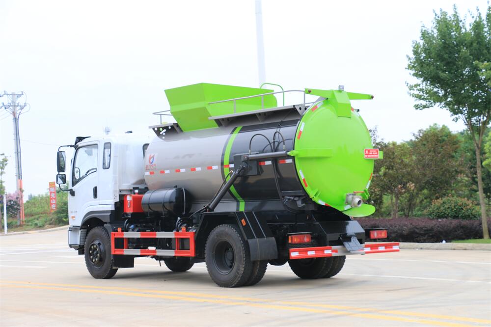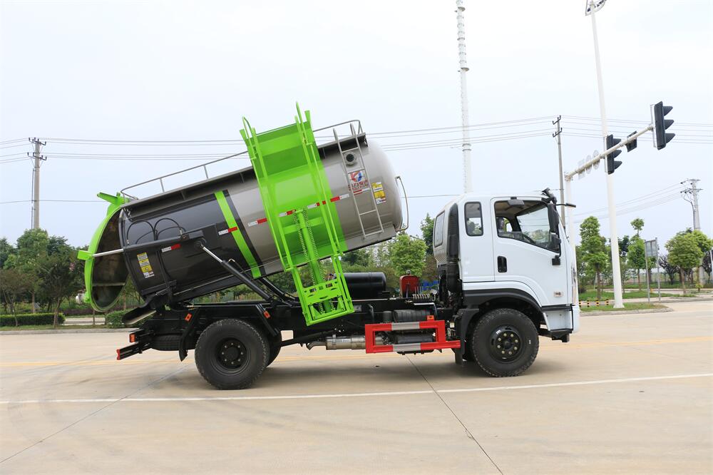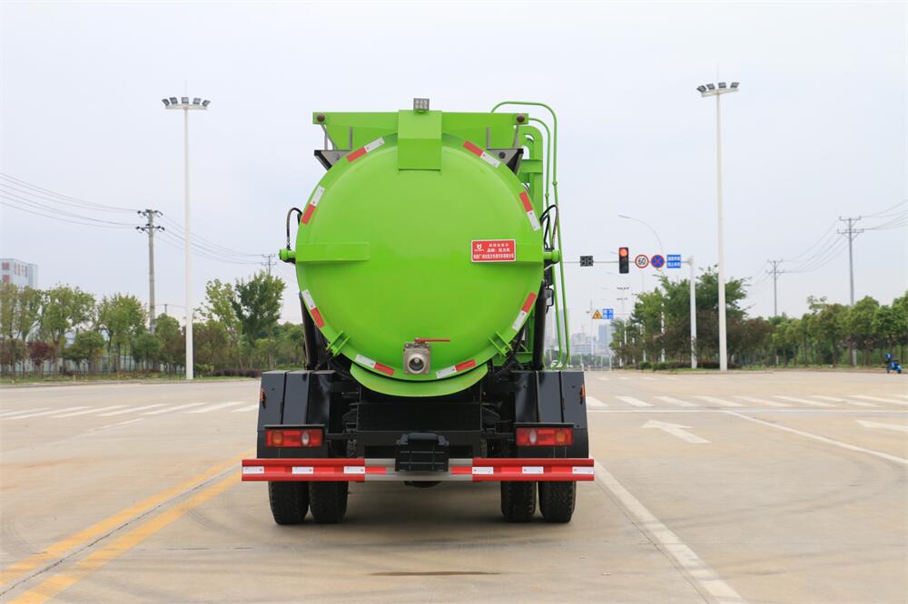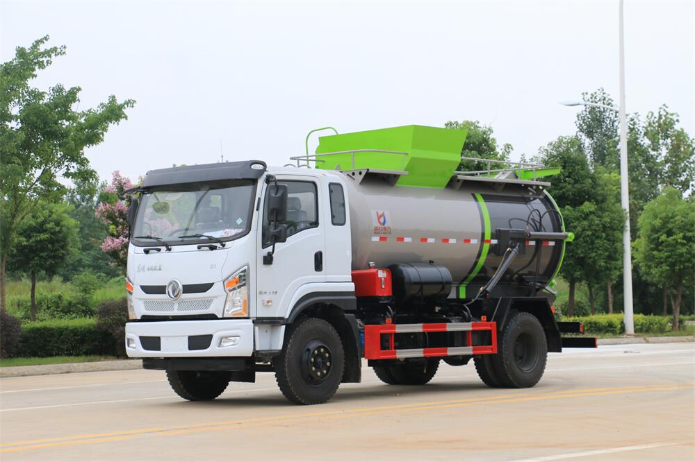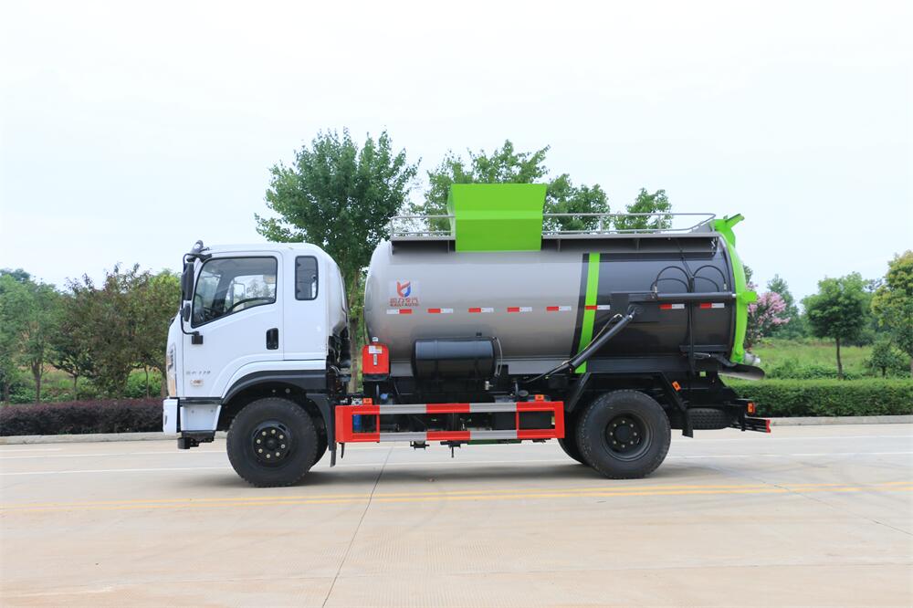 上裝配置:罐體容積10m3,配備120L/240L掛桶提升翻轉(zhuǎn)機(jī)構(gòu),液壓系統(tǒng),后蓋液壓鎖緊開(kāi)啟,罐體可以舉升自卸,尾部帶自流閥;用于運(yùn)輸液態(tài)垃圾,其特點(diǎn)操作簡(jiǎn)單,密封性好,無(wú)泄漏,無(wú)異味;可選裝固液分離功能,推板擠壓功能,常用于餐館的垃圾轉(zhuǎn)運(yùn)處理。