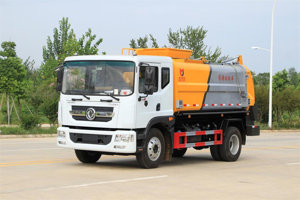 餐廚垃圾車或者餐余垃圾車、泔水車,是用于收集和運輸生活垃圾、食品垃圾(泔水)及城市淤泥的專用車輛。具有自裝、自卸、固液分離、壓縮垃圾自動化程度高、密封性好、操作簡便、無污水泄露和異味的散發等特點。