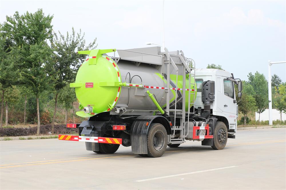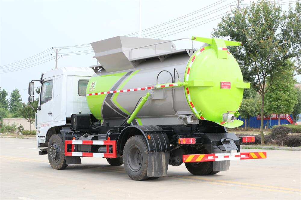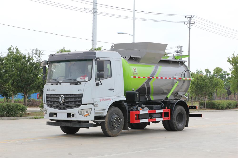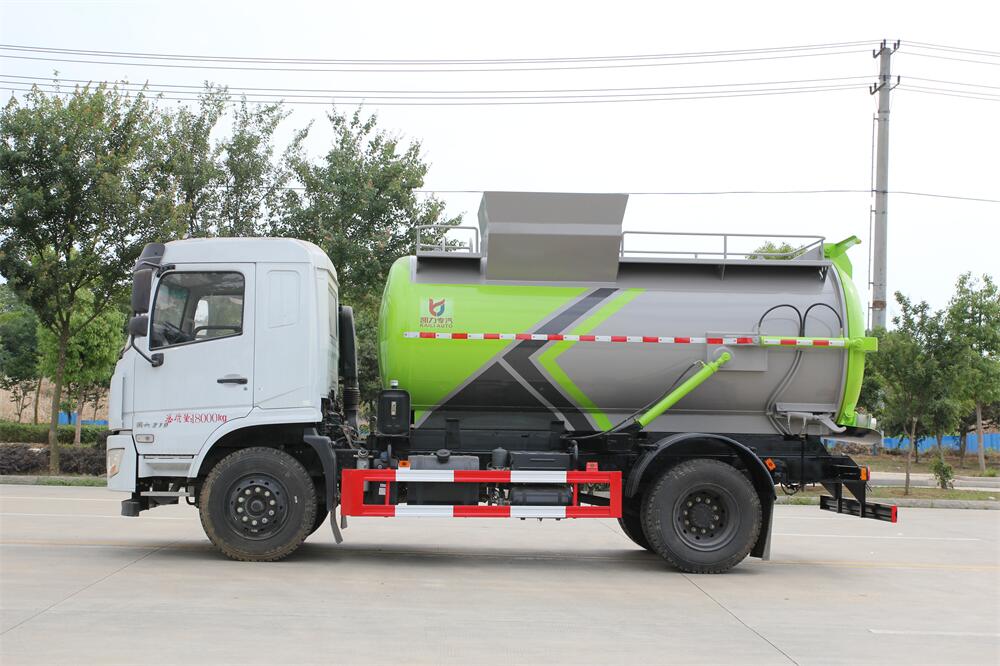 上裝配置:罐體容積10m3,配備120L/240L掛桶提升翻轉機構,液壓系統,后蓋液壓鎖緊開啟,罐體可以舉升自卸,尾部帶自流閥;用于運輸液態垃圾,其特點操作簡單,密封性好,無泄漏,無異味;可選裝固液分離功能,推板擠壓功能,常用于餐館的垃圾轉運處理。