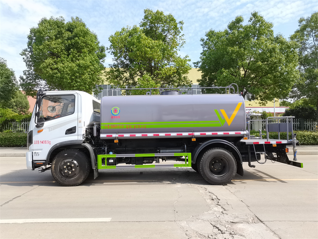灑水車前裝有鴨形噴嘴或圓頭沖嘴,后面裝有圓柱開灑水噴嘴或蓮蓬頭噴嘴,后部有一工作平臺,裝配有水炮。后部還可裝8個噴嘴(選裝)。