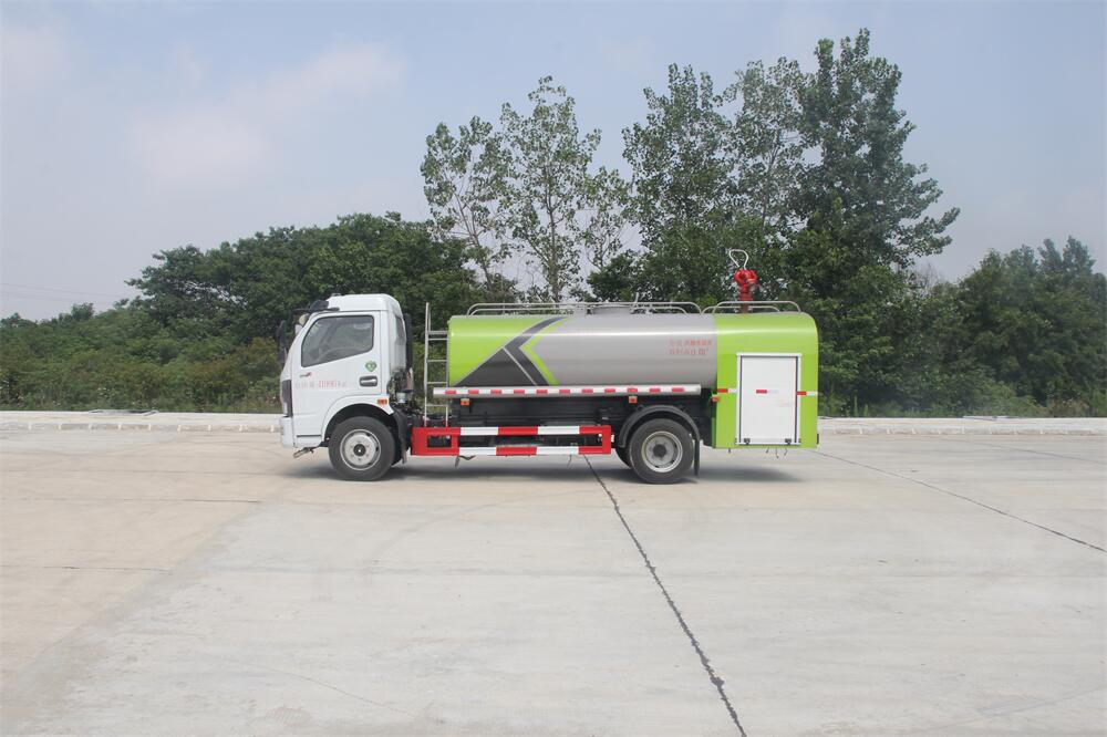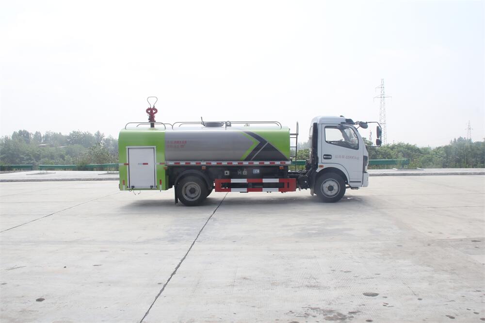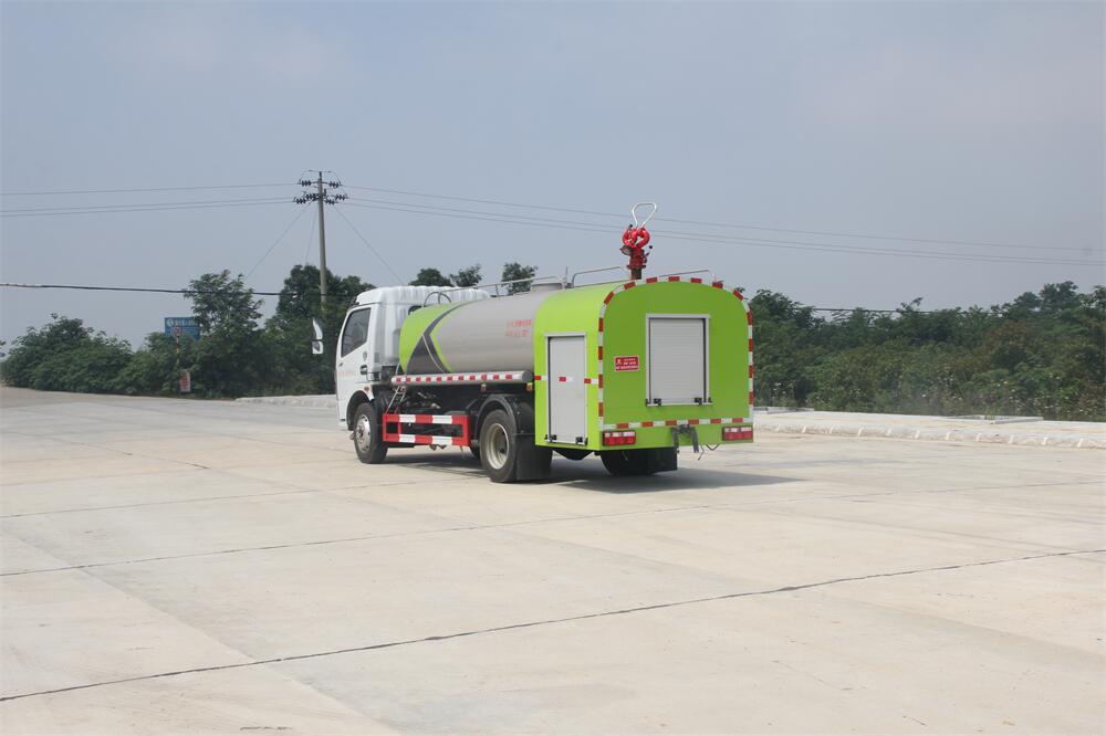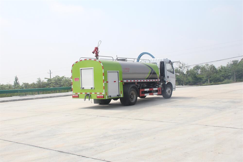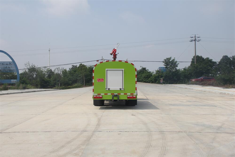 灑水車前裝有鴨形噴嘴或圓頭沖嘴,后面裝有圓柱開灑水噴嘴或蓮蓬頭噴嘴,后部有一工作平臺,裝配有水炮。后部還可裝8個噴嘴(選裝)。