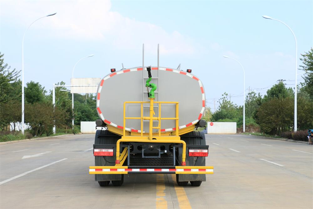 灑水車前裝有鴨形噴嘴或圓頭沖嘴,后面裝有圓柱開灑水噴嘴或蓮蓬頭噴嘴,后部有一工作平臺(tái),裝配有水炮。后部還可裝8個(gè)噴嘴(選裝)。