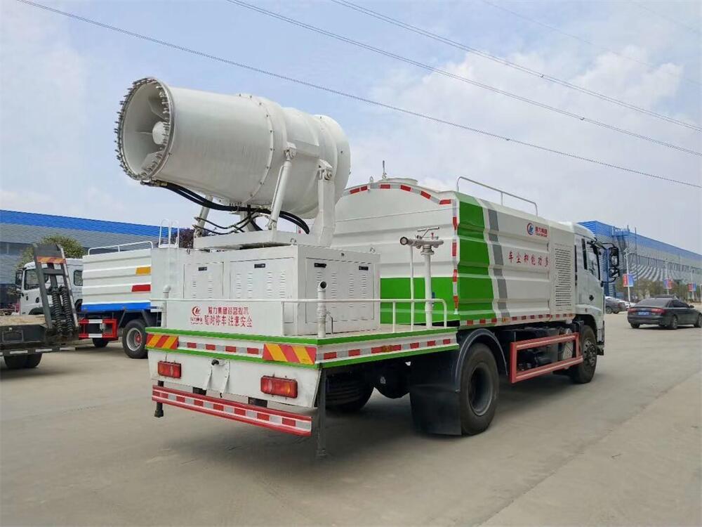 上裝配置:罐體容積為 12立方,選配風(fēng)送式霧炮機(jī)組射程30米、40米、50米、60米、80米、100米、120米霧炮,罐體鋼板為4mm碳鋼Q235材質(zhì),罐內(nèi)隔板具有防波作用,以減輕汽車行駛時(shí)罐體液體沖擊,罐體及整車外形尺寸按照公告。帶大功率專用灑水泵,泵可自吸自排,整車前沖、后灑、側(cè)噴、帶65消防接口,后平臺(tái)配CLW-50、CLW-60、CLW-80、CLW-100、CLW-120型風(fēng)送式霧炮機(jī)組;罐體前封頭配大功率柴油發(fā)電機(jī)組;前封頭帶水位計(jì),后平臺(tái)主管路帶1寸澆花接口,后爬梯。帶兩根輸水管及陰陽端。罐體顏色:銀/灰/綠,罐體兩側(cè)噴“多功能抑塵車”字樣,貼反光標(biāo)示。