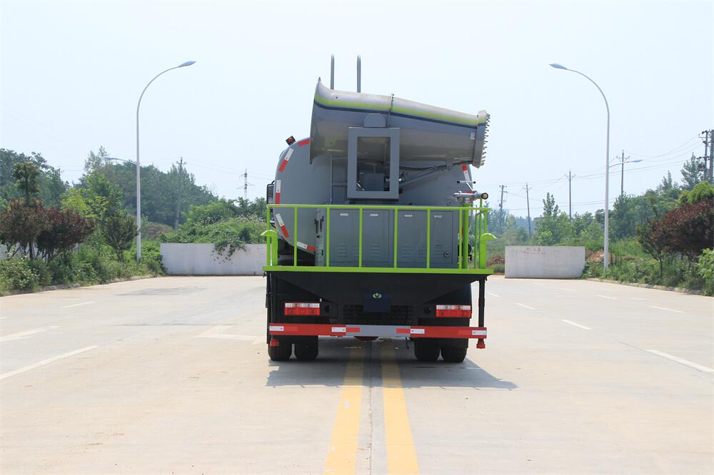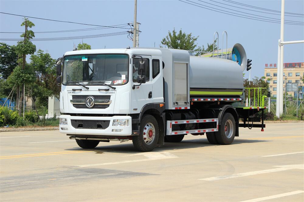 上裝配置:罐體容積為 12立方,選配風送式霧炮機組射程30米、40米、50米、60米、80米、100米、120米霧炮,罐體鋼板為4mm碳鋼Q235材質,罐內隔板具有防波作用,以減輕汽車行駛時罐體液體沖擊,罐體及整車外形尺寸按照公告。帶大功率專用灑水泵,泵可自吸自排,整車前沖、后灑、側噴、帶65消防接口,后平臺配CLW-50、CLW-60、CLW-80、CLW-100、CLW-120型風送式霧炮機組;罐體前封頭配大功率柴油發(fā)電機組;前封頭帶水位計,后平臺主管路帶1寸澆花接口,后爬梯。帶兩根輸水管及陰陽端。罐體顏色:銀/灰/綠,罐體兩側噴“多功能抑塵車”字樣,貼反光標示。