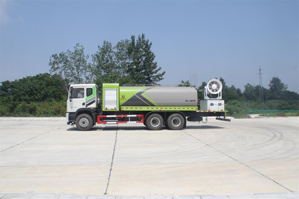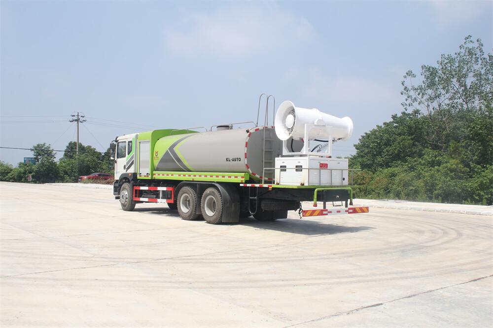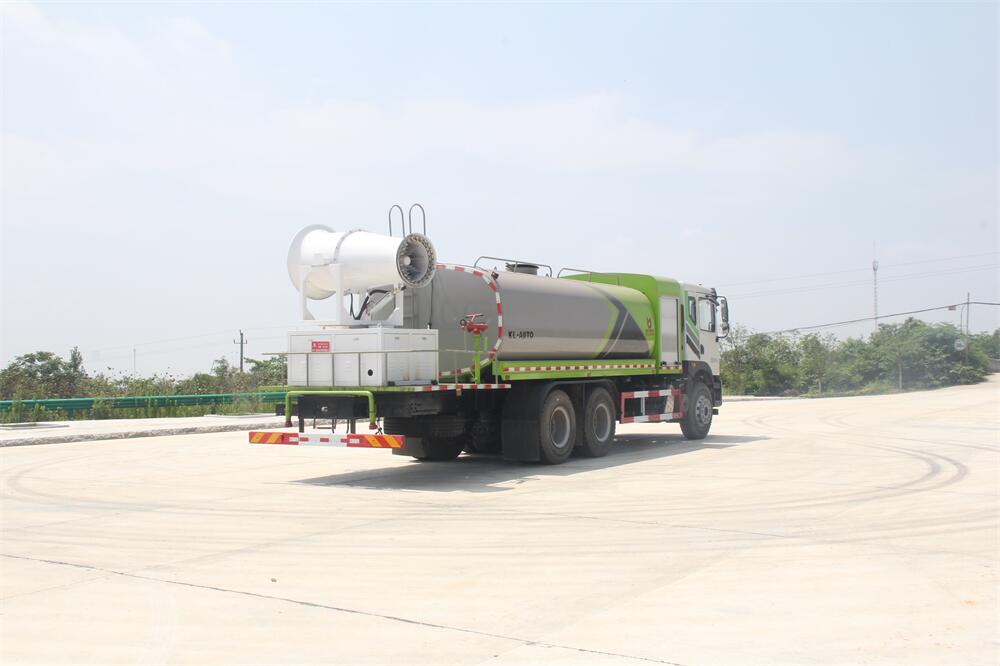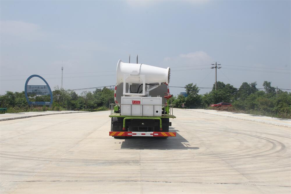 上裝配置:罐體容積為 16立方,選配風(fēng)送式霧炮機(jī)組射程30米、40米、50米、60米、80米、100米、120米霧炮,罐體鋼板為4mm碳鋼Q235材質(zhì),罐內(nèi)隔板具有防波作用,以減輕汽車行駛時(shí)罐體液體沖擊,罐體及整車外形尺寸按照公告。帶大功率專用灑水泵,泵可自吸自排,整車前沖、后灑、側(cè)噴、帶65消防接口,后平臺(tái)配CLW-50、CLW-60、CLW-80、CLW-100、CLW-120型風(fēng)送式霧炮機(jī)組;罐體前封頭配大功率柴油發(fā)電機(jī)組;前封頭帶水位計(jì),后平臺(tái)主管路帶1寸澆花接口,后爬梯。帶兩根輸水管及陰陽(yáng)端。罐體顏色:銀/灰/綠,罐體兩側(cè)噴“多功能抑塵車”字樣,貼反光標(biāo)示。