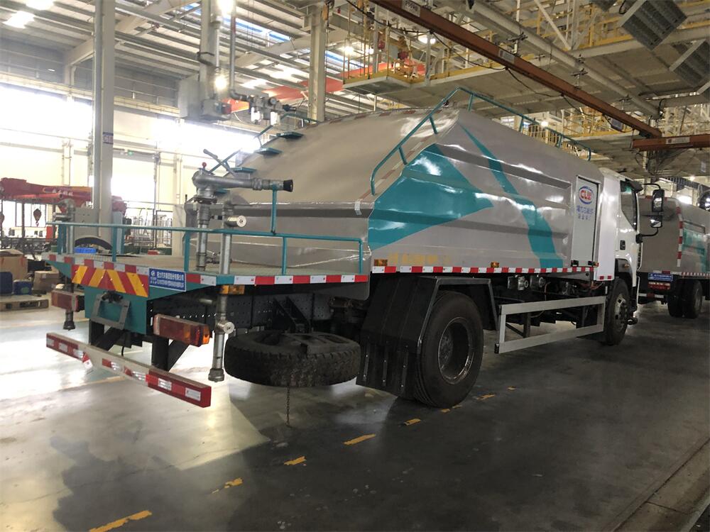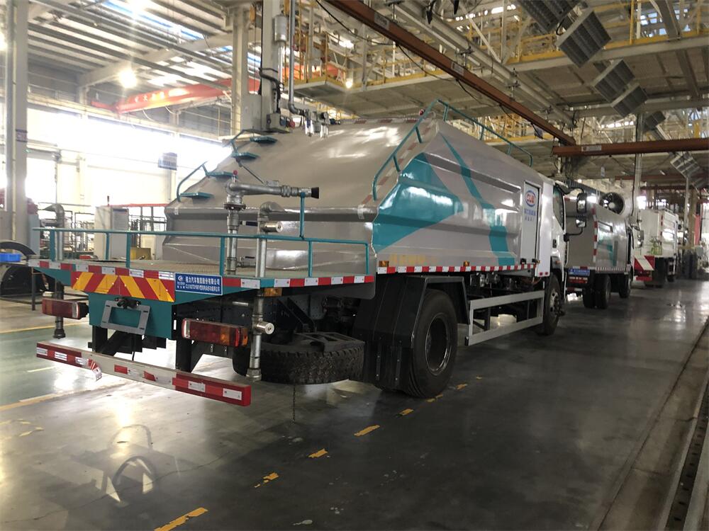 上裝配置:罐體容積為 8立方,選配風送式霧炮機組射程30米、40米、50米、60米、80米、100米、120米霧炮,罐體鋼板為4mm碳鋼Q235材質,罐內隔板具有防波作用,以減輕汽車行駛時罐體液體沖擊,罐體及整車外形尺寸按照公告。帶大功率專用灑水泵,泵可自吸自排,整車前沖、后灑、側噴、帶65消防接口,后平臺配CLW-50、CLW-60、CLW-80、CLW-100、CLW-120型風送式霧炮機組;罐體前封頭配大功率柴油發電機組;前封頭帶水位計,后平臺主管路帶1寸澆花接口,后爬梯。帶兩根輸水管及陰陽端。罐體顏色:銀/灰/綠,罐體兩側噴“多功能抑塵車”字樣,貼反光標示。