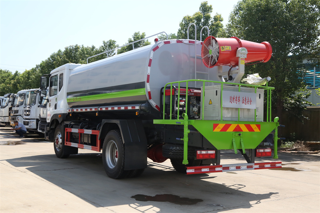 上裝配置:罐體容積 12-15立方,風(fēng)送式霧炮機組30米,40米選擇,罐體采用國標(biāo)Q235碳鋼材質(zhì),罐體厚度4MM,前后封頭5MM加厚型,罐體內(nèi)雙層隔板具有防波蕩作用,以減輕汽車行駛時罐內(nèi)液體沖擊;灑水車整車及外形尺寸嚴(yán)格按照**機動車公告制作而成;裝配大功率專用灑水泵,前沖、后灑、側(cè)噴、后平臺帶綠化灑水炮,灑水炮可全方位旋轉(zhuǎn),可連續(xù)調(diào)成直沖狀、大雨、小雨、毛毛雨;配消防接口,自流閥,濾網(wǎng),帶自吸自排功能。前封頭帶水位計,后平臺主管路帶1寸澆花接口,后爬梯,帶1個消防接頭,帶1個自流閥,1個過濾裝置,其余標(biāo)配。