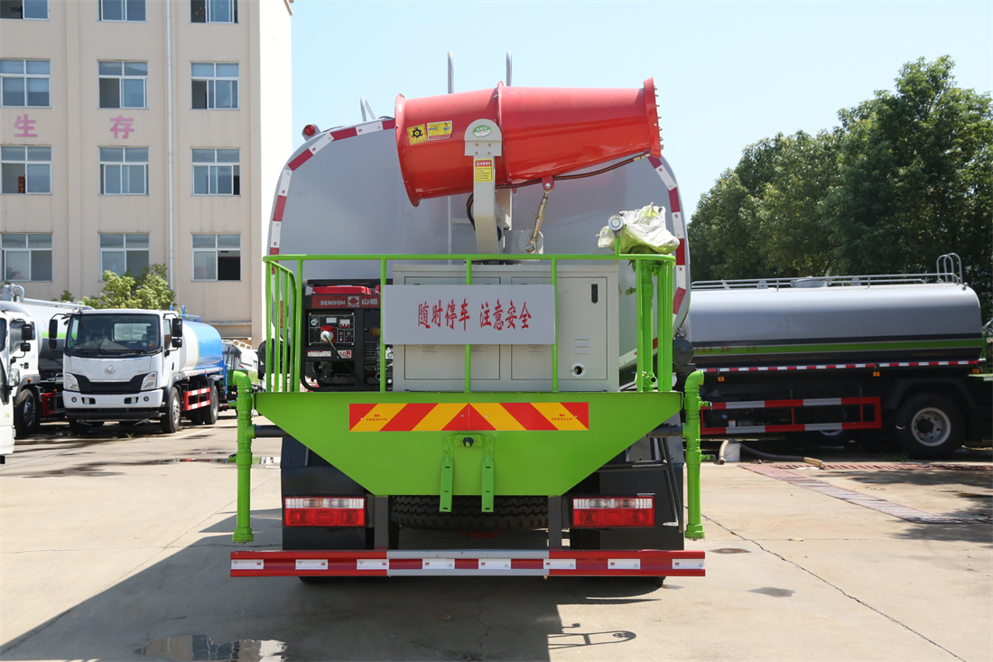 主要由發(fā)動機帶動變速箱,變速箱上安裝的取力器帶動灑水泵,灑水泵產(chǎn)生動力,將罐體內(nèi)部的液體通過管網(wǎng)噴灑出去。工作范圍:自吸高度:≥7m,灑水寬度:≥14m,**大射程:≥28m;可調(diào)節(jié)成柱狀,射程≥28m;也可調(diào)節(jié)成霧狀,射程≥5m。