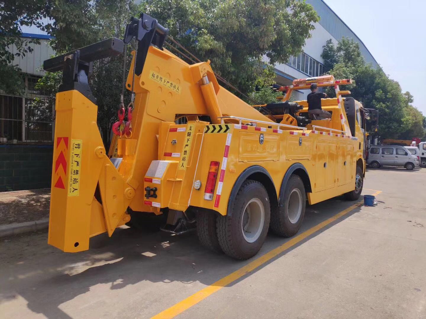 16T16D上裝或20T20D上裝,二節(jié)式六邊型吊臂,三節(jié)托臂,分體式車廂,雙側聯(lián)動操作裝置,,兩個十噸液壓卷揚,四十五米鋼絲繩,直徑18MM,配四套鋼叉,一套拖叉套,一套鋼板吊耳拖叉,一套抱胎裝置.**燈一套,**氣管總成一套,捆綁鏈條兩根;(16T16D上裝標配2個8噸卷揚)
