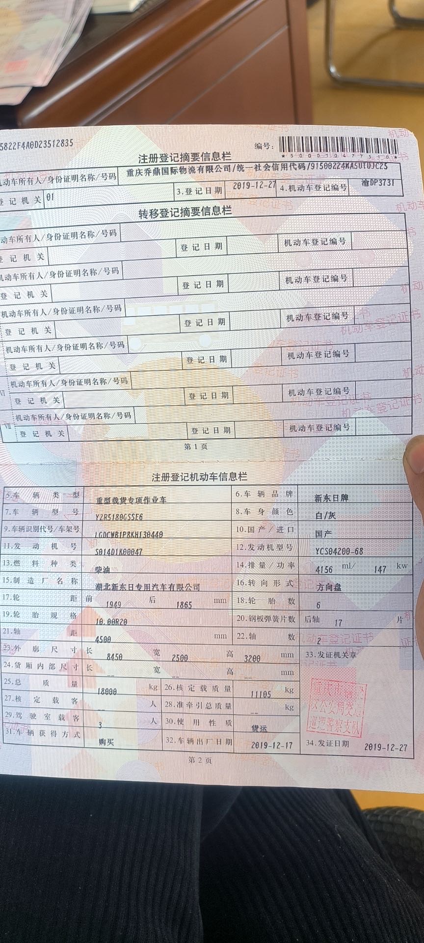 天龍后八輪勾臂(同款2臺(tái)) 2??年份:2019年5月 3??發(fā)動(dòng)機(jī):康機(jī)245馬力,國(guó)五 4??底盤(pán)配置:東風(fēng)天龍底盤(pán),5700軸距,7檔變速箱,1100鋼絲