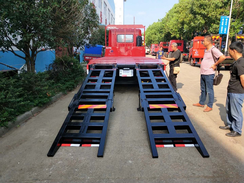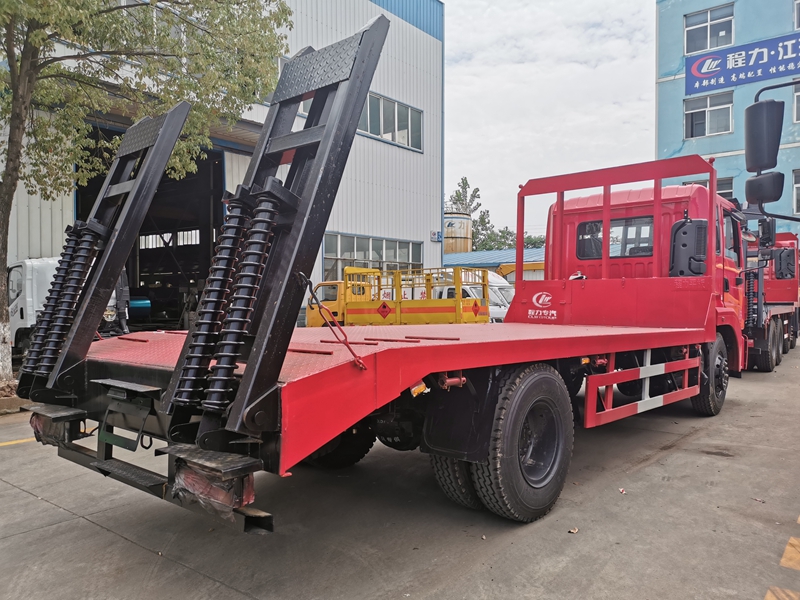 上裝采用五毫米花紋鋼板,100*100方鋼做橫梁,加強雙簧爬梯,可拉15噸以下挖機。