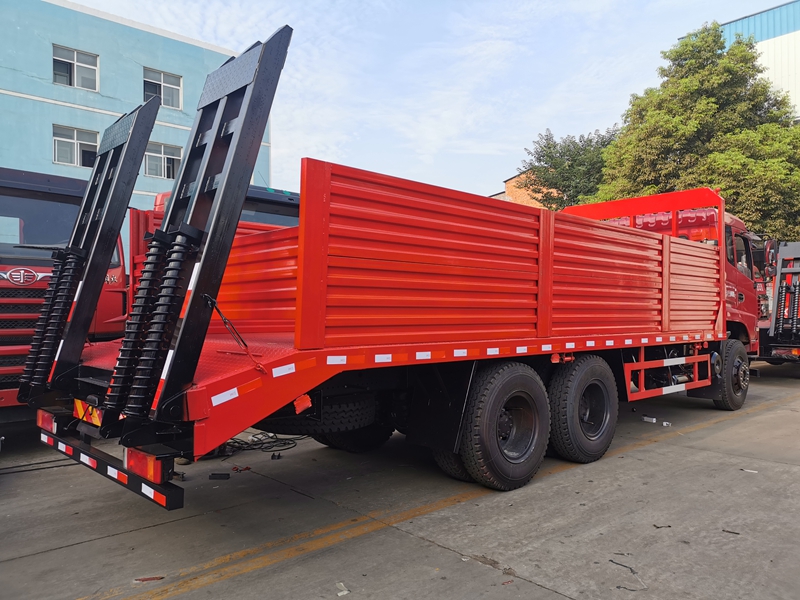 上裝采用八毫米花紋鋼板,120套100方管做橫梁,加強雙簧爬梯,可拉25噸以下挖機。